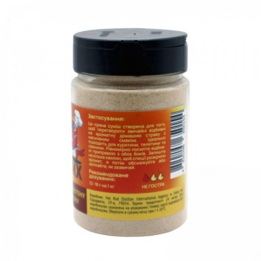 | Склад | часник сушений, цибуля сушена, солодка паприка, перець чорний мелений, чебрець сушений, цедра лимона сушена, куркума |