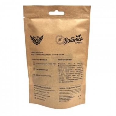 У набір входить дубова обсмажена тріска, корінь дягелю, соснова брунька і сушене яблуко. Такий мікс за 21 день дозволяє створити мягку насичену настоянку з деревно-медовим характером зі складним післясмаком. Обжарена дубова тріска забезпечує алкоголю ефект домашнього бочкового напою, що надає йому округлості, благородності і шарму.